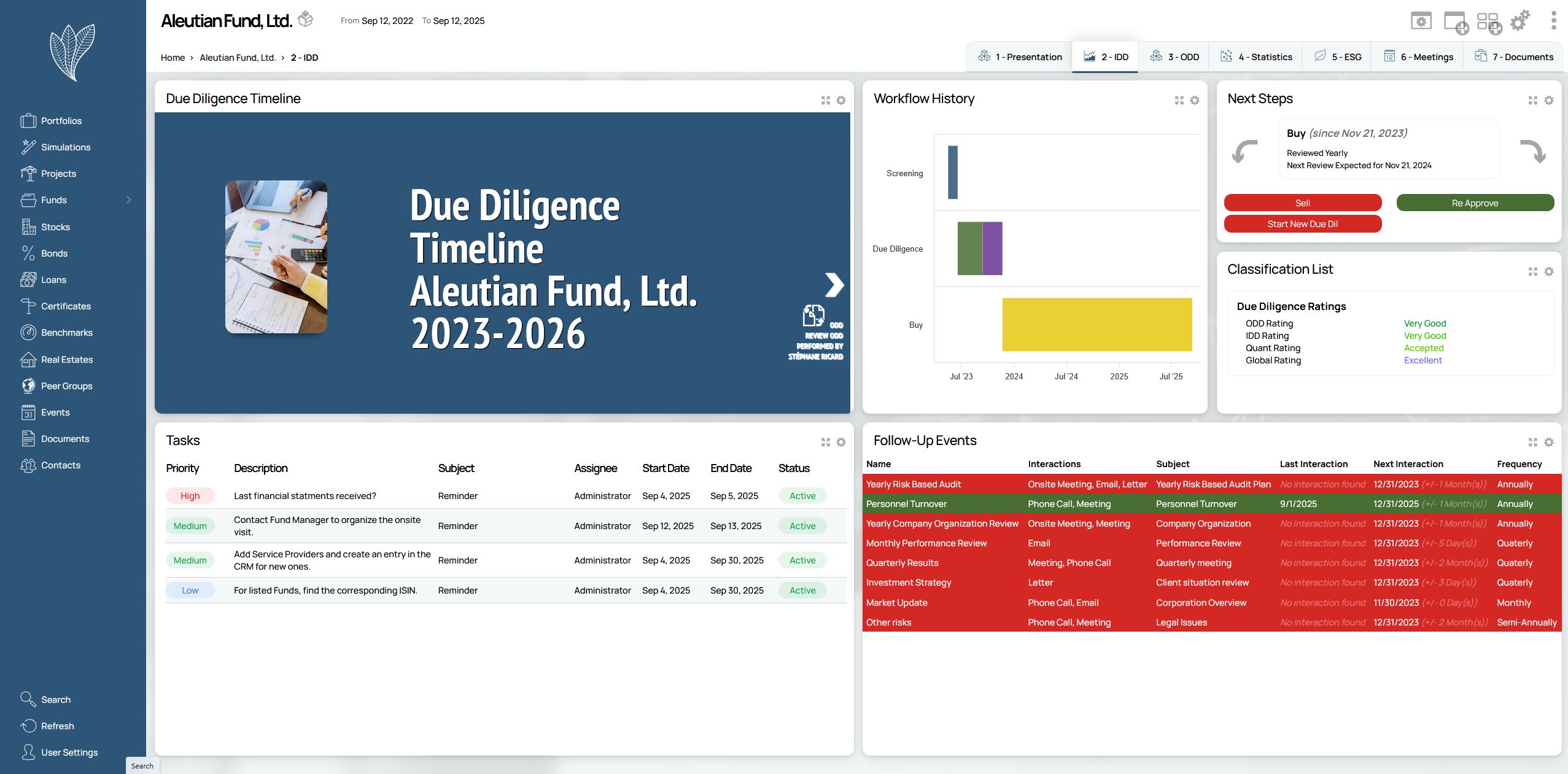 - Associate each meeting or call with the relevant fund, contact, and due diligence process,