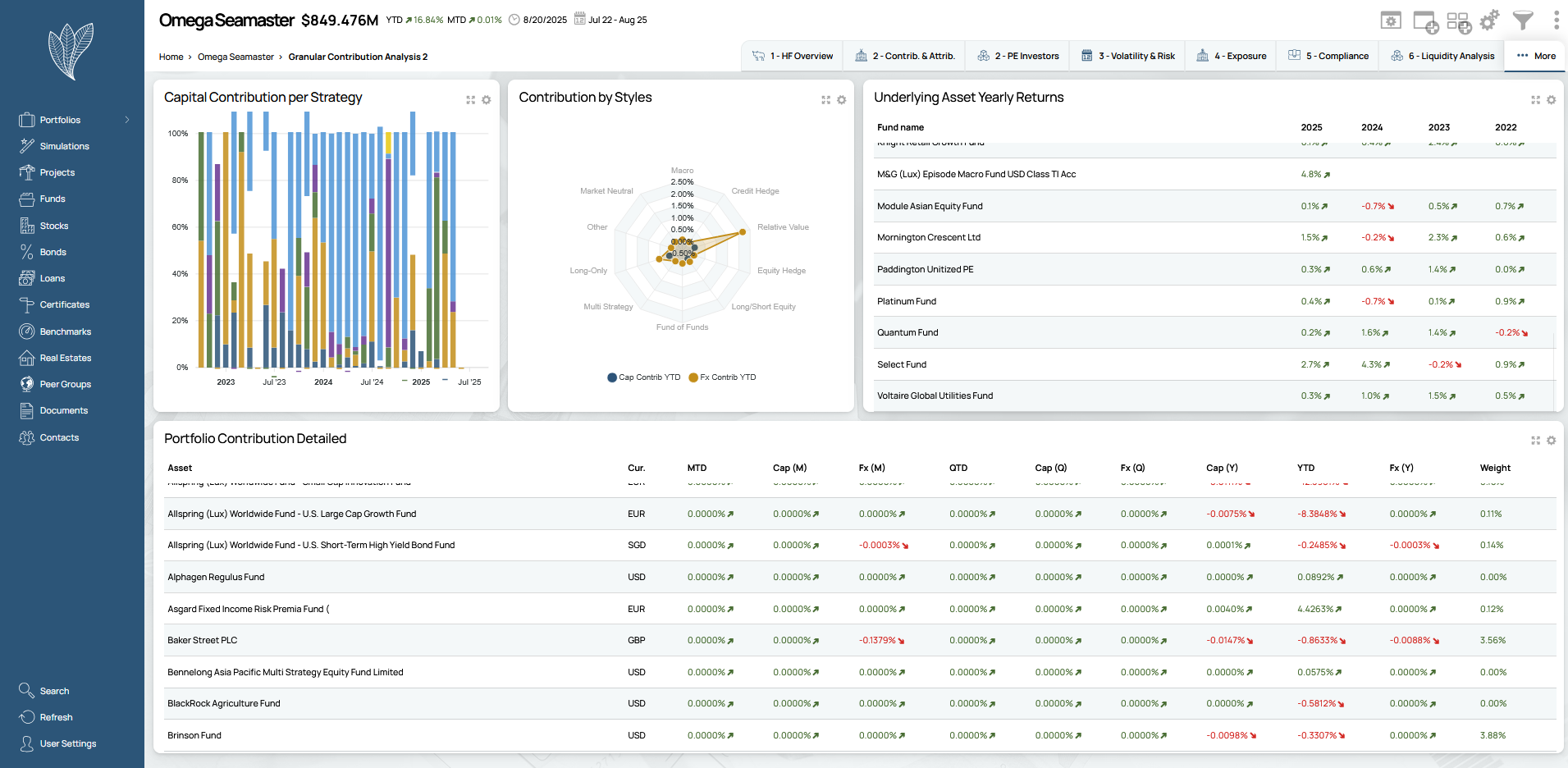 - Multi-level contribution and attribution by asset, strategy or any other available classification