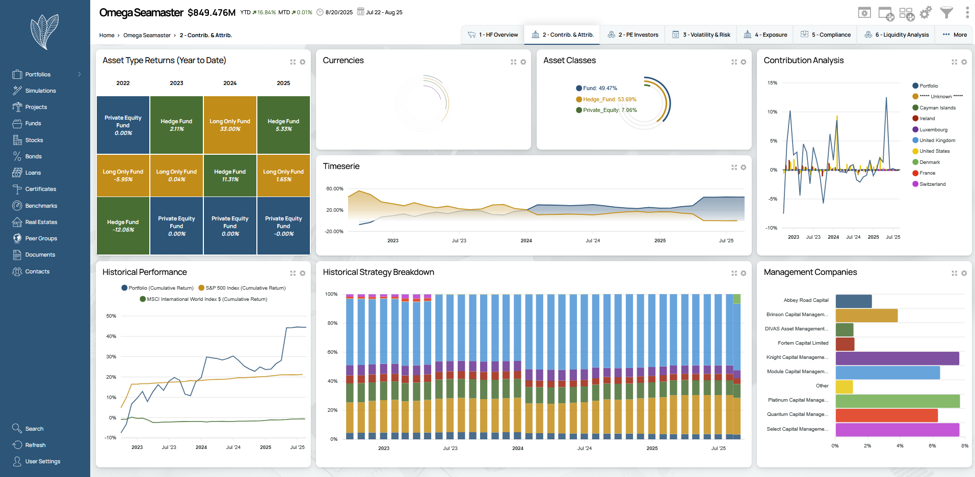Gain full clarity on what drives your returns. Analyze portfolio performance with precision, from the top level down to individual assets or strategies.
